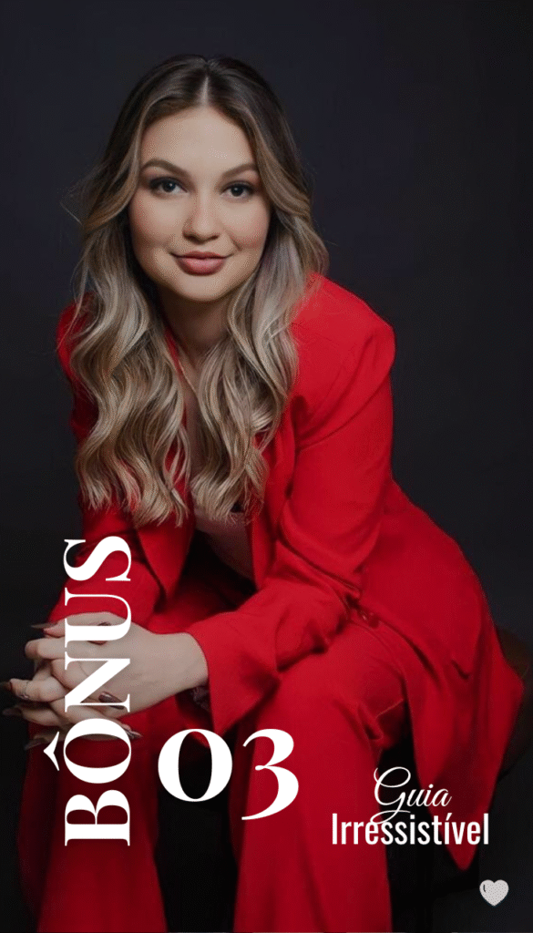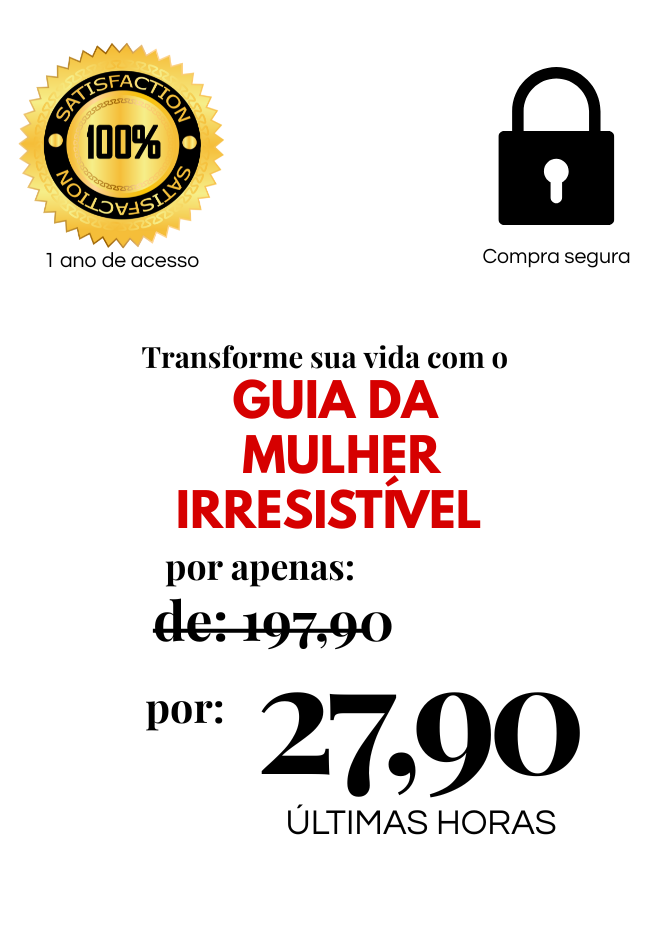 Um plano prático, direto e totalmente aplicável para despertar a mulher irresistível que existe em você, transformar sua energia e elevar sua autoestima através de técnicas reais e profundamente eficazes. Em poucos minutos por dia, você aprende a curar feridas internas, entender o comportamento masculino, dominar sua presença silenciosa, fortalecer seu magnetismo e ativar o tipo de poder feminino que atrai respeito, atenção e relacionamentos mais saudáveis.